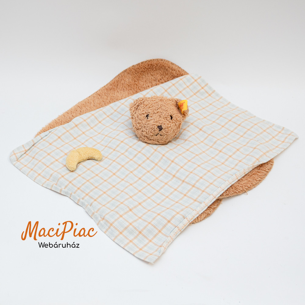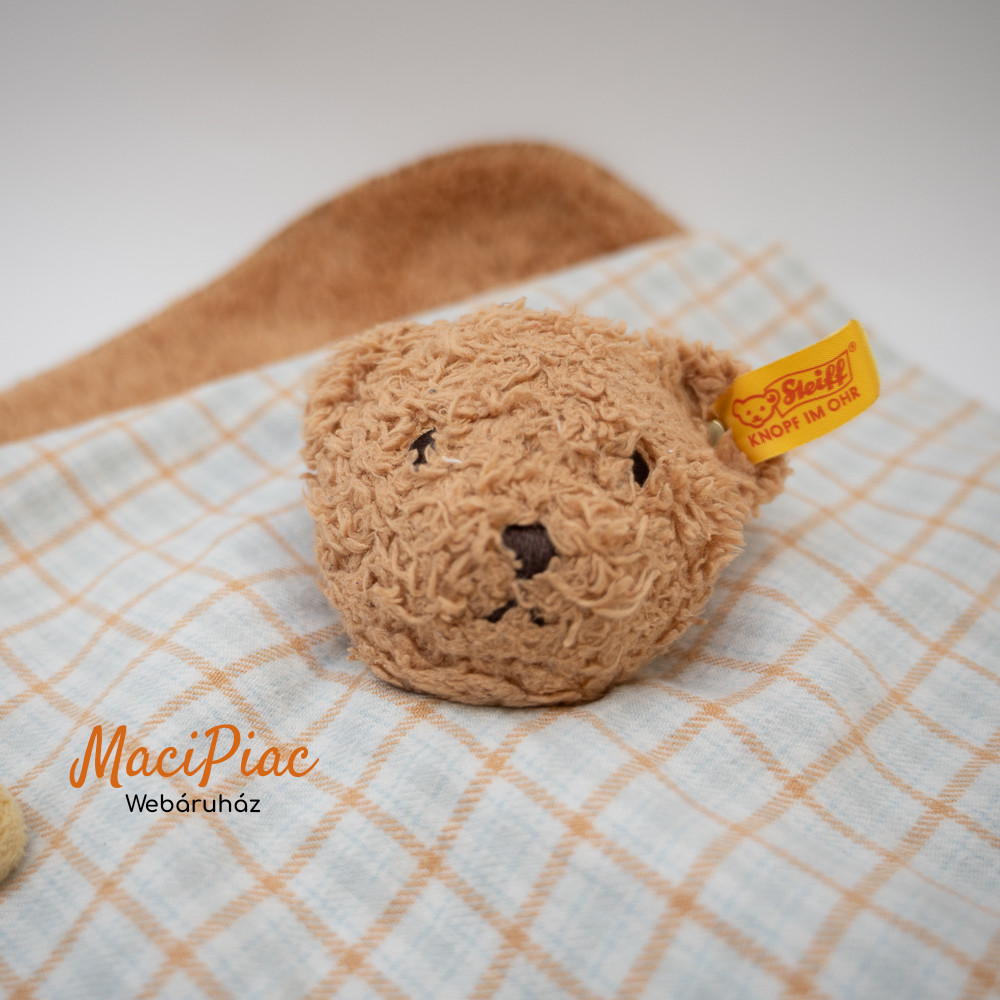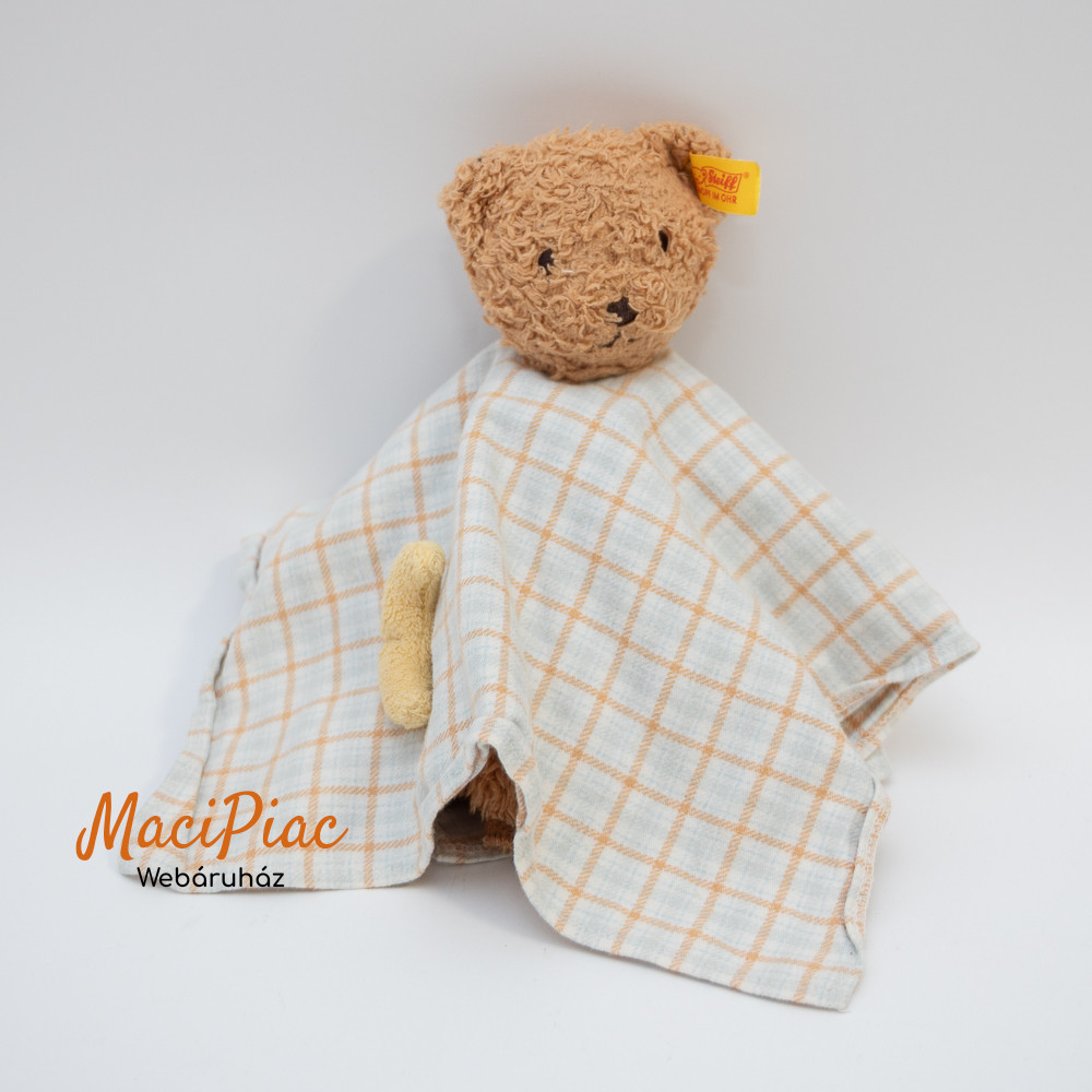 Eredeti Német plüss Steiff maci fém jelzett alvókendó, rongyi, morzsolgatókendő