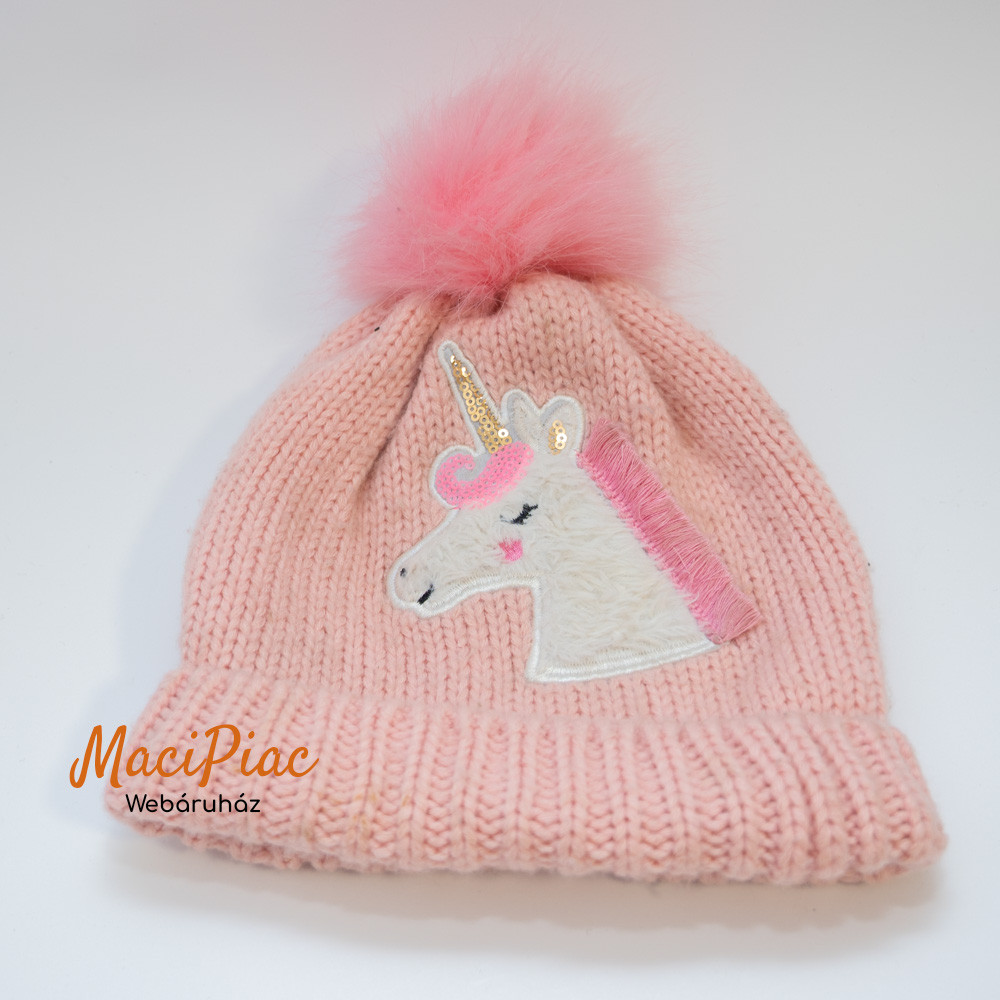 Kötött téli rózsaszín únikornis kislány sapka ONE SIZE