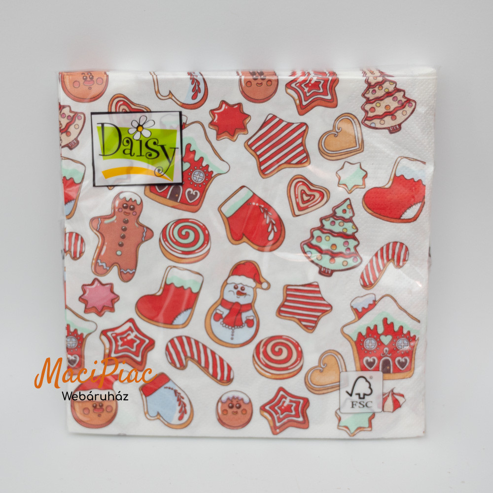 Mézeskalács, sütemény mintás Karácsonyi szalvéta Daisy új! 3 rétegű 33x33 cm 20 db