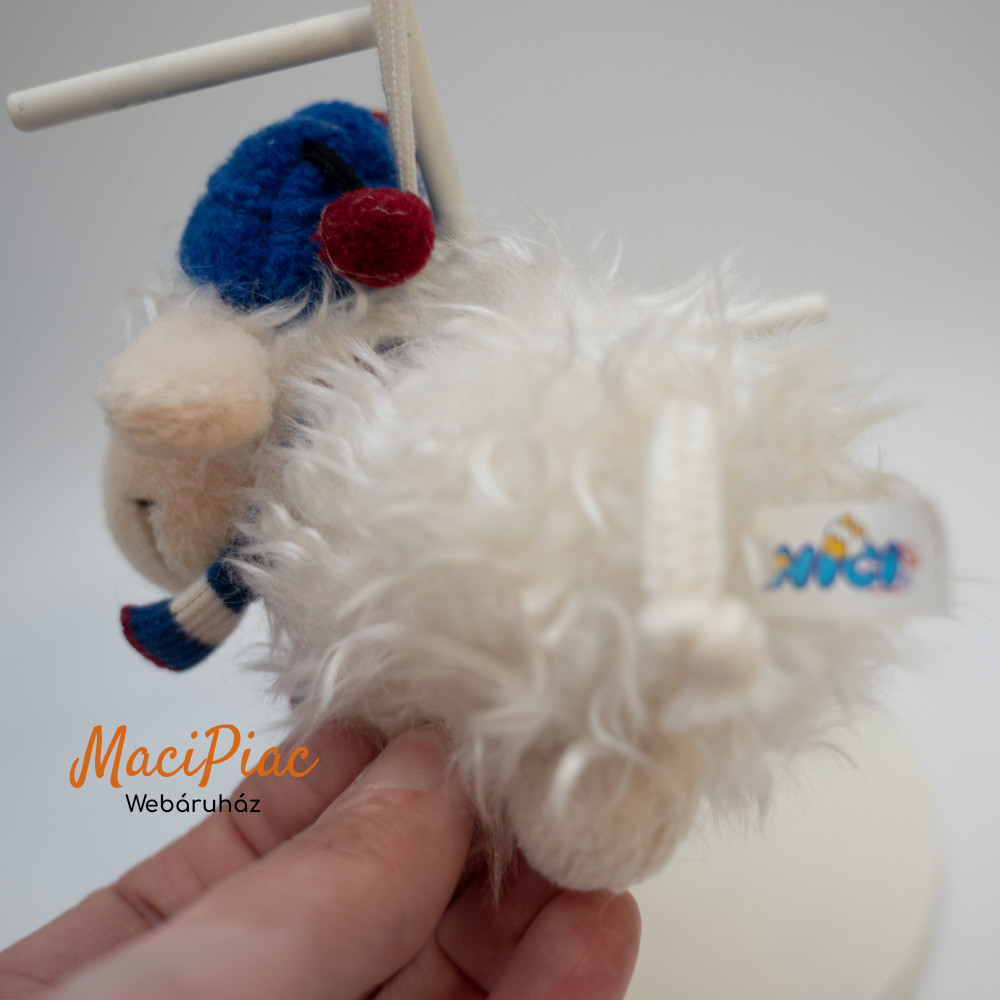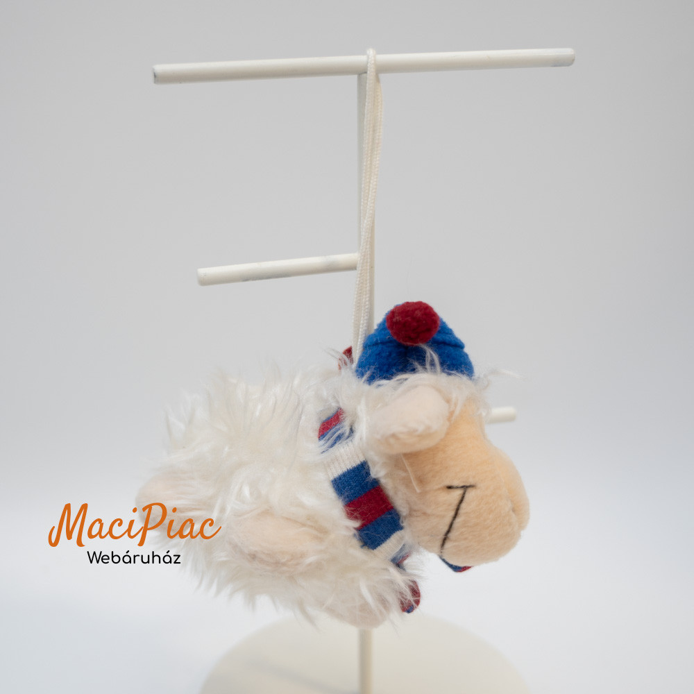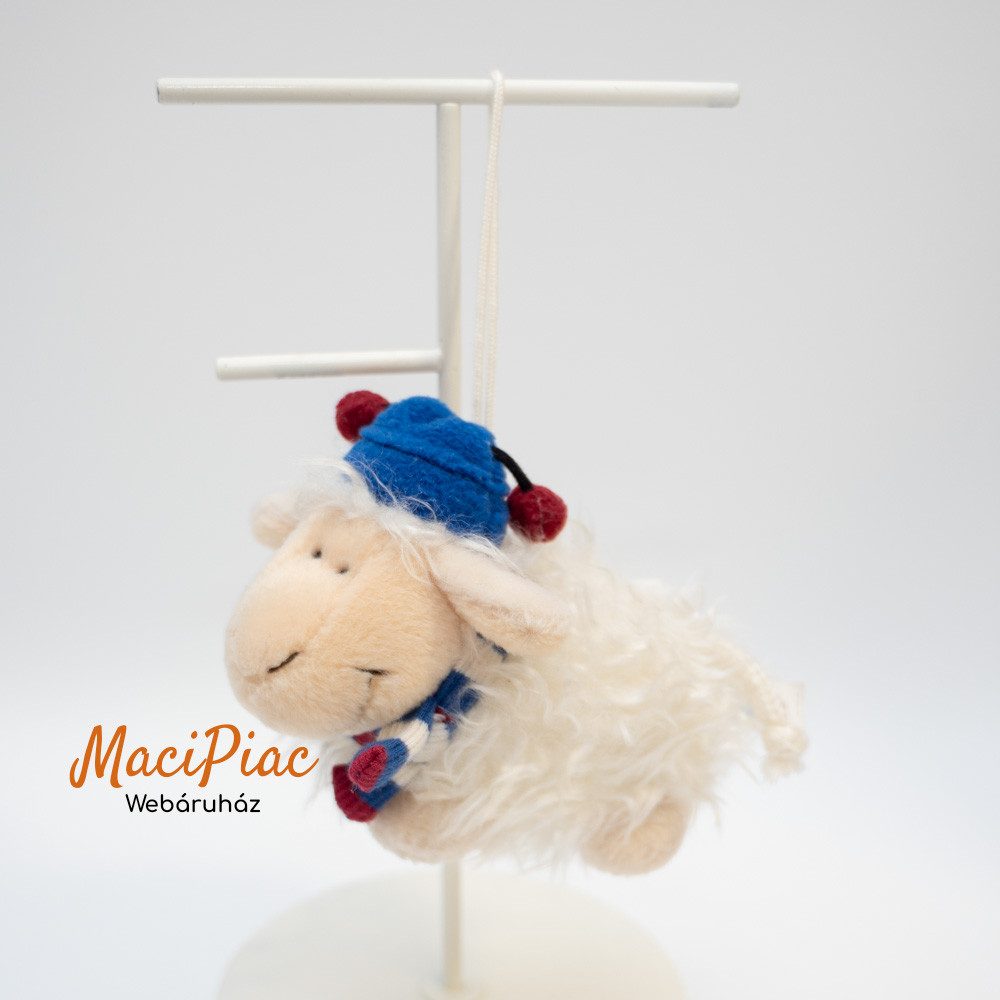 Plüss Nici Toys akasztható fehér bárány kék sapkában, sállal