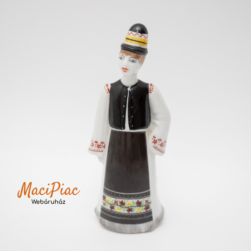 Régi Hollóházi porcelán népviseletes fiú retro népi figura (jelzett, eredeti darab, kézzel festett)