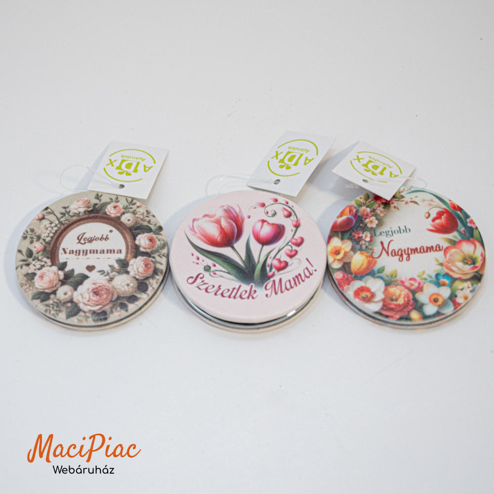 Tulipán mintás piperetükör, sminktükör, zsebtükör két oldalas Szeretlek Mama! felírattal Új!