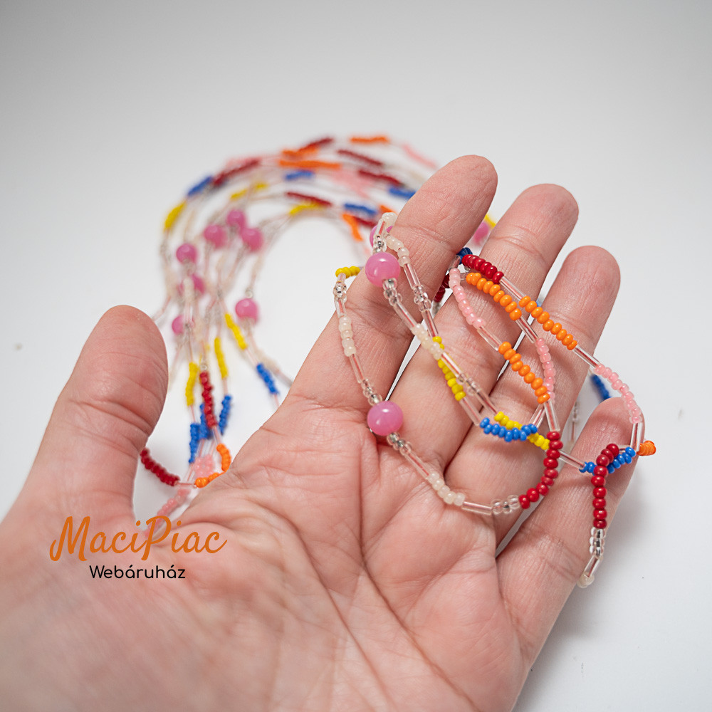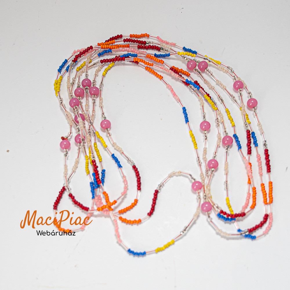 Üveg gyöngyös nyaklánc 152 cm hosszú (színes)